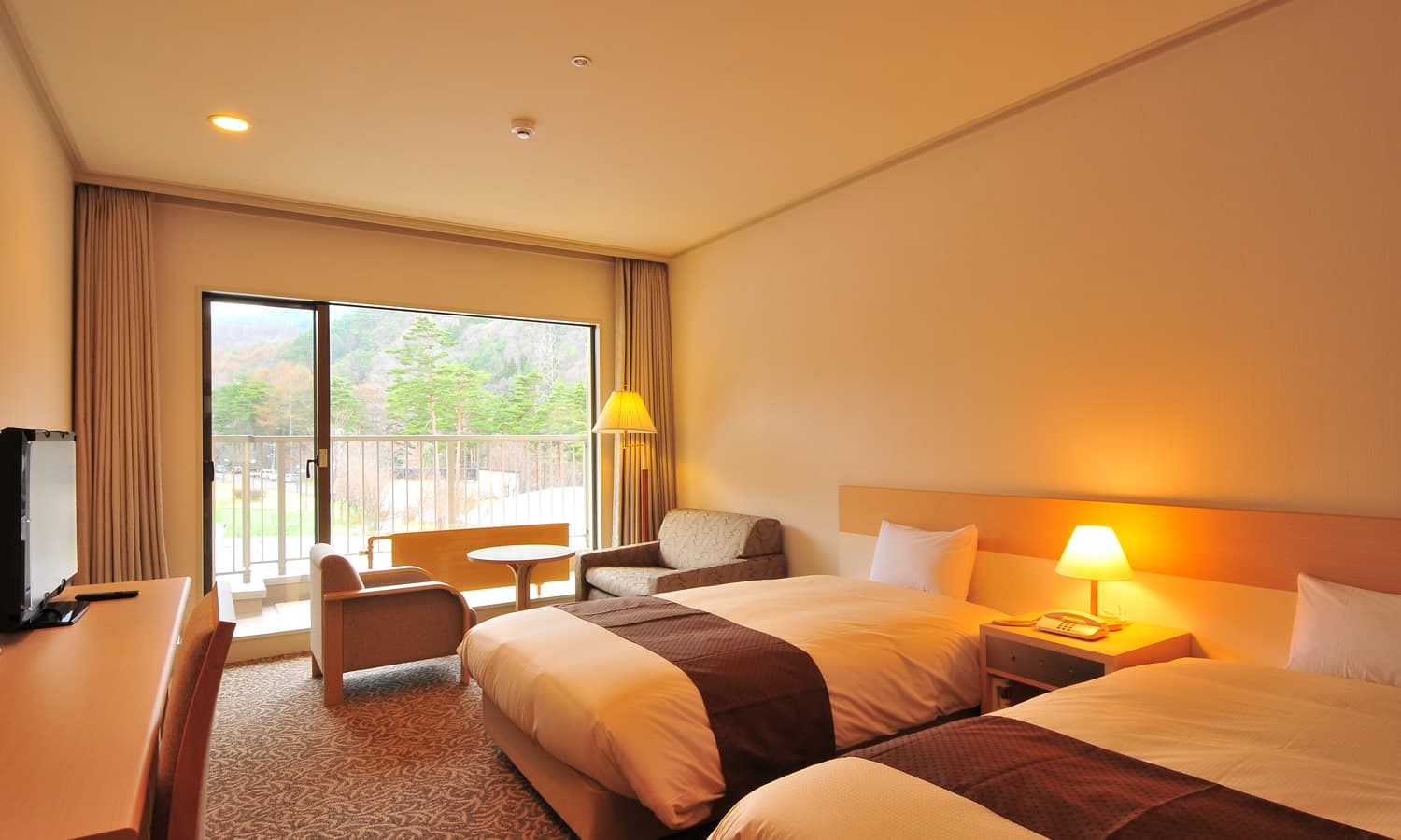 露天風呂付客室では温泉の出る露天風呂から常念岳を見ることができます。